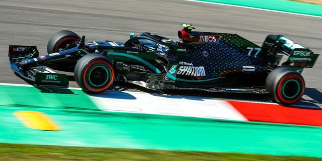 تصدر سائق فريق مرسيدس الفنلندي فالتري بوتاس تجارب جائزة توسكان الكبرى الحرة الثالثة المرحلة التاسعة ضمن منافسات بطولة العالم لسباقات سيارات الفورمولا 1 2020.