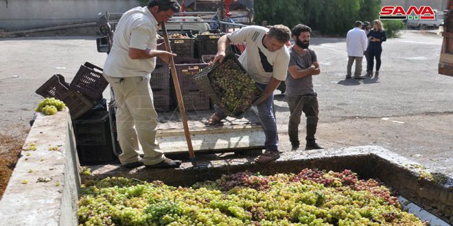 مزارعو العنب بالسويداء يبدؤون توريد محصولهم إلى الشركة السورية لتصنيع العنب