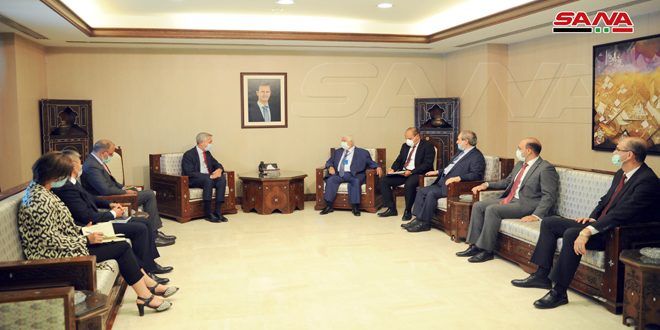 حضر اللقاء الدكتور فيصل المقداد نائب وزير الخارجية والمغتربين ومحمد العمراني مدير إدارة المكتب الخاص وعبد المنعم عنان مدير إدارة المنظمات والمؤتمرات الدولية في وزارة الخارجية والمغتربين.