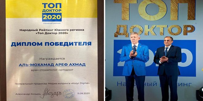 حصل الطبيب السوري المغترب عارف المحمد على لقب أفضل طبيب لعام 2020 في المنطقة الجنوبية في أوكرانيا وذلك في تصويت شعبي تنظمه إدارة مدينة أوديسا الأوكرانية بالتعاون مع محطات تلفزيونية محلية.