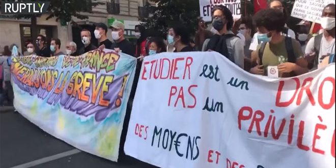 تظاهر آلاف العمال في أنحاء فرنسا اليوم احتجاجاً على تقليص عدد الوظائف بسبب إجراءات الإغلاق المرتبطة بانتشار جائحة فيروس كورونا المستجد.