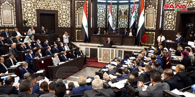 عقد مجلس الشعب اليوم جلسته الأولى من الدورة العادية الأولى للدور التشريعي الثالث برئاسة حموده صباغ رئيس المجلس لمناقشة البيان الوزاري للحكومة المتضمن برنامج عملها للمرحلة المقبلة بحضور رئيس مجلس الوزراء المهندس حسين عرنوس والوزراء.
