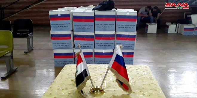 وزع مجلس الأعمال الروسي السوري بالمشاركة مع التجمع الروسي لتنمية علاقات الصداقة مع سورية اليوم سلات غذائية على نحو ألف أسرة متضررة من الإرهاب بمحافظة حماة وذلك في صالة الشهيد ناصح علواني الرياضية.