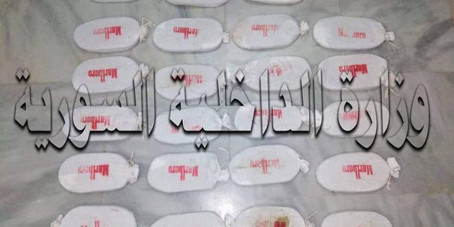 وبينت وزارة الداخلية في بيان لها اليوم تلقت سانا نسخة منه أنه بعد ورود معلومات والمتابعة والمراقبة لشخص يقوم بترويج المخدرات في مدينة دمشق وريفها تمكن فرع مكافحة المخدرات بدمشق من إلقاء القبض على الشخص المذكور وبرفقته شخص آخر في محلة (الكباس) وبحوزتهما كمية أربعة كيلوغرامات وأربعمئة غرام من مادة الحشيش المخدر.