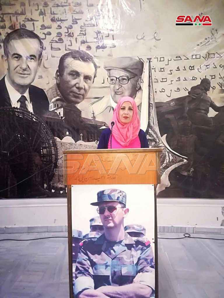 بدورها قدمت القاصة الفلسطينية سمية حميد قصة بعنوان”حنين”اختزنت فيها مجموعة من ذكريات لاجئ فلسطيني ووصفت الحنين لتراب الأرض والألم الذي سببه التشرد والهجرة والعدوان.