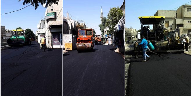 وضمن خطة المحافظة الخدمية لتحسين واقع الطرقات قامت ورشات المحافظة بأعمال التزفيت في حارات وطرق القدم حيث تم تزفيت الطريق الرئيسي لخط سير السرفيس بدءا من جامع القدم الكبير ولغاية تقاطع شارع الدحاديل بمساحة تقدر ب 6200 متر مربع إضافة لتزفيت جادة الإصلاح بمساحة 2200 متر مربع.