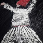 وشرح رستم أن إنجاز اللوحة يمر بعدة مراحل “بداية دق المسامير ذات الرؤوس العريضة على لوح خشبي ومن ثم تبدأ مرحلة رسم الشكل بشد الخيط الملون من مسمار إلى آخر ويمكن في بعض الأحيان طلاء اللوح الخشبي أو تغليفه بقطعة قماشية لإبراز الألوان والخطوط”.