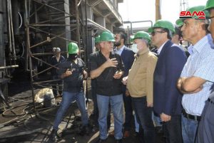 واطلع المهندس عرنوس على سير أعمال الصيانة في مختلف أقسام المصفاة واستمع من الفنيين والمختصين والعمال إلى آلية العمل والجهود المبذولة من قبل كوادر المصفاة للإسراع في إعادة إقلاعها وعودتها إلى العمل حيث أكد رئيس مجلس الوزراء أننا بجهود عمالنا وكفاءاتنا الوطنية قادرون على تأمين كل متطلبات العمل والإنتاج وإعادة الإقلاع بالشركات والمؤسسات المتوقفة وتأمين احتياجات أبناء شعبنا الأساسية.