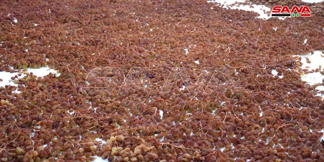 قدرت مديرية الزراعة بالسويداء إجمالي إنتاج مادة الزبيب المصنعة من ثمار العنب للموسم الحالي بنحو 5400 طن.