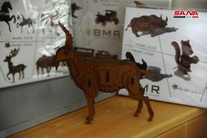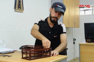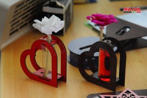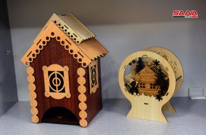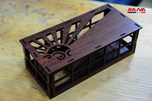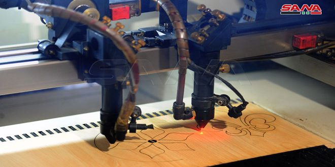 دمشق-سانا بأشعة الليزر الحمراء تترسخ يوميا أجمل التصاميم على قطع خشبية مختلفة الأشكال والأحجام ضمتها …
