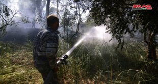 أخمد عناصر دائرة الحراج في مديرية زراعة طرطوس بالتعاون مع فرق من مديرية زراعة اللاذقية اليوم الحريق الذي شب في الأراضي الزراعية على محور قرى “المزارع سربيون محورتي” على الحدود الإدارية بين محافظتي طرطوس واللاذقية.