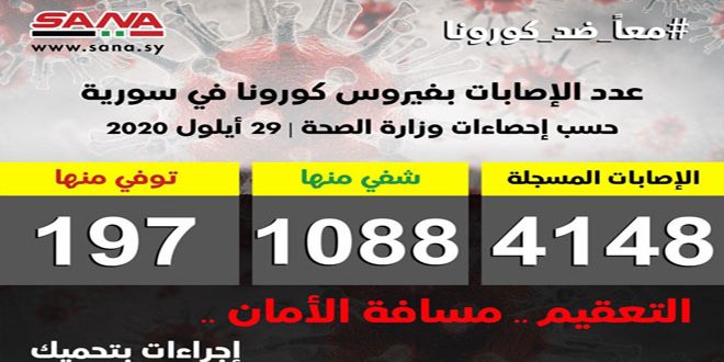 وأشارت الوزارة في بيان تلقت سانا نسخة منه إلى أن حصيلة الإصابات المسجلة بلغت حتى الآن 4148 حالة شفيت منها 1088 وتوفيت 197 حالة.
