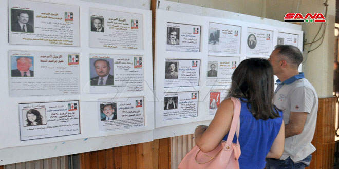 وضم المعرض الذي نظمته شعبة المدينة لفرع نقابة المعلمين بالسويداء ويستمر ثلاثة أيام لوحات توثيقية تشمل صوراً لمعلمين ومعلمات على مستوى شعبة المدينة لفرع النقابة من الذين رحلوا منذ عام 1959 إلى الآن مع تقديم نبذة عن حياتهم ومسيرتهم المهنية والمهام الموكلة إليهم وما قدموه من خدمات جليلة لمجتمعهم.