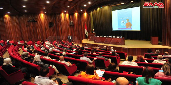 وقرأت المترجمة الدكتورة نورا اريسيان في مستهل الندوة التي تقام بمناسبة اليوم العالمي للترجمة وتستضيفها مكتبة الأسد الوطنية كلمة المترجمين السوريين إلى زملائها في الوطن العربي والعالم مبينة أن الترجمة تلعب دوراً إيجابياً عندما تعتمد المعيار الأخلاقي وتصبح قوة تستطيع أن ترسخ قيم الخير والجمال والعدالة والسلام داعية على لسان المترجمين السوريين نظراءهم في العالم إلى التضامن في وجه الإرهاب والدعوة لرفع الإجراءات القسرية الجائرة المفروضة على الشعب السوري.