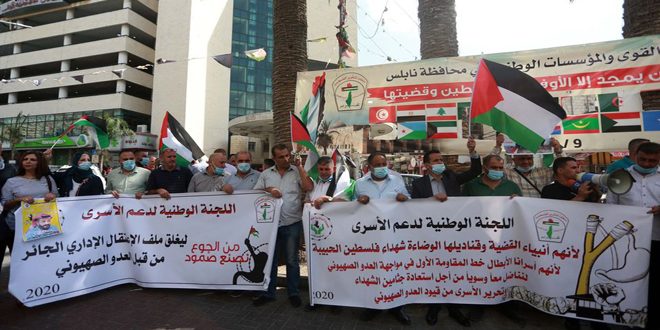 ووفقاً لوكالة وفا أكد المشاركون في الوقفة أمام مقر الصليب الأحمر في المدينة تضامنهم مع الأسرى في معتقلات الاحتلال وخاصة الأسير المضرب عن الطعام ماهر الأخرس منذ 67 يوماً مطالبين اللجنة الدولية للصليب الأحمر والمؤسسات الحقوقية والإنسانية بالضغط على سلطات الاحتلال لوقف ممارساتها القمعية بحق الأسرى والإفراج عنهم خاصة المرضى منهم الذين باتت حياتهم مهددة بالخطر وسط إهمال طبي متعمد ولا سيما في ظل انتشار فيروس كورونا.