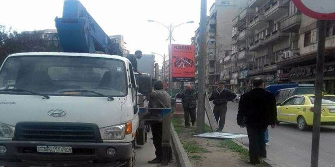 بدأ مجلس مدينة حمص حملة واسعة لإزالة اللوحات الإعلانية المخالفة ضمن أحياء المدينة.