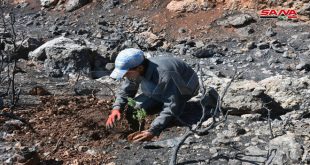 المهندس أحمد ميرزا رئيس شعبة الحماية في زراعة حماة أوضح لمراسل سانا أن عمال المديرية يستعدون خلال هذه الفترة لاستصلاح مواقع الحراج التي طالتها النيران وإعادة تهيئتها مجدداً للتحريج مبينا أنه تم وضع إشارة “حريق منع التصرف” على الصحيفة العقارية للمنطقة التي أتت عليها النيران لحظر دخولها من قبل أي شخص بغرض الاحتطاب وللحيلولة دون وضع اليد عليها مضيفاً.. إن الورشات تعمل على جمع الأحطاب والأغصان التالفة بطريقة نظامية دون المساس بأي شجرة يمكن أن تتجدد في الفترة المقبلة.