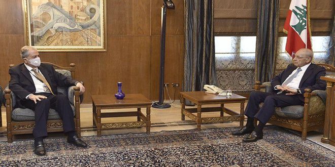 بحث رئيس مجلس النواب اللبناني نبيه بري مع سفير سورية في لبنان علي عبد الكريم اليوم الأوضاع في المنطقة وتحديات الحصار الاقتصادي.