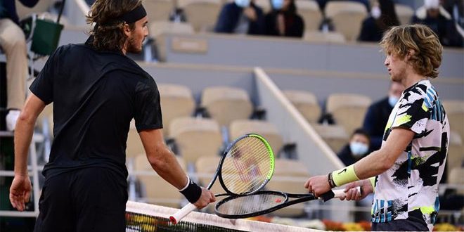 تأهل ستيفانوس تيتيباس المصنف الخامس إلى قبل نهائي بطولة فرنسا المفتوحة للتنس بعد فوزه على الروسي أندريه روبليف اليوم بواقع 7-5 و6-2 و6-3.