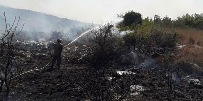 تمكنت فرق الإطفاء التابعة لدائرة الحراج بمديرية الزراعة في اللاذقية وبمساندة طائرة مروحية مساء اليوم من إخماد الحريق شب في أراض زراعية مهملة وقسم من الأراضي الحراجية المليئة بالشوكيات في محيط قرية بسطوير بريف جبلة.