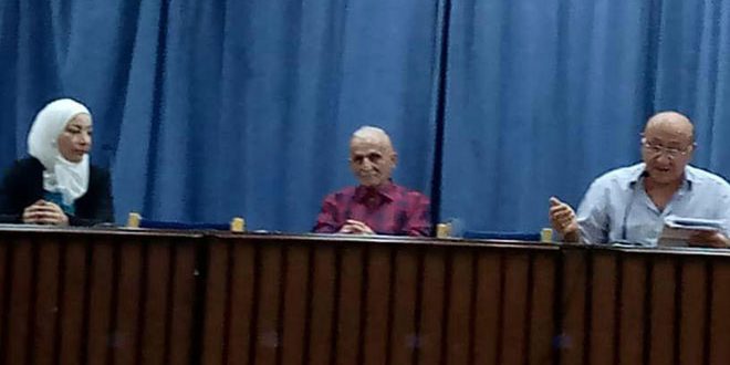 الناقد والكاتب نزيه شاهين ضاحي تحدث خلال اللقاء عن أهم الروايات السورية التي تناولت الحرب وظهرت كجزء من الأدب الثوري القومي الحامل للفكر الإيدلوجي والذي يجسد الصراع بين الأمة واعدائها حيث وجد في الرواية أفضل الأشكال الأدبية للتعبير عن ظاهرة الحرب لأنها تمتاز ببيئة ثقافية منفتحة لها خصائصها وملامحها وتعتمد على الفكرة والتجربة والإبداع والإثارة متوقفاً عند روايات “أزاهير تشرين المدماة” للدكتور عبد السلام العجيلي و”المرصد” للروائي “حنا مينه” اللتين رصدتا بعمق الحرب بأبعادها ومراميها فاعتمدت الأولى الأسلوب التوثيقي والتسجيلي مع مراعاة الحبكة الفنية المتقنة فيما جسدت الثانية بكل دقة لحظة تحرير أبطال الجيش العربي السوري لمرصد جبل الشيخ.