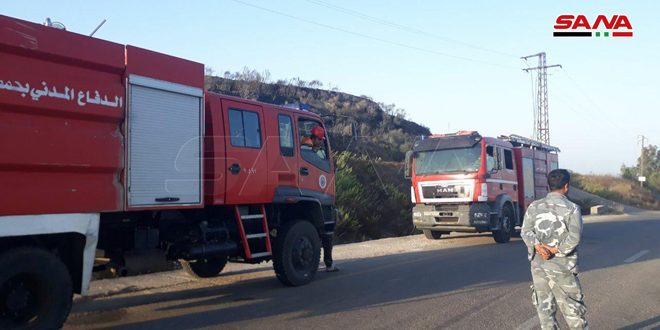 فرق الإطفاء والدفاع المدني تسيطر على حريق (قرب علي) بريف حمص الغربي