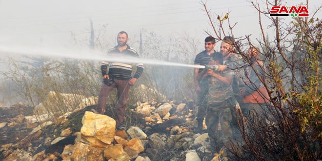 تتواصل جهود فرق الإطفاء لإخماد الحرائق المشتعلة في الغابات والأحراج والأراضي الزراعية في ريف محافظة اللاذقية وسط اشتداد النيران في بعض المواقع وامتدادها إلى اخرى جديدة.