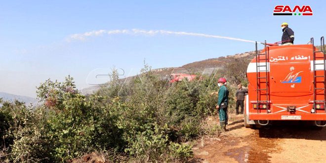 فرق الإطفاء بحمص تتمكن من السيطرة على معظم الحرائق في عدد من المواقع الحراجية بريف المحافظة الغربي