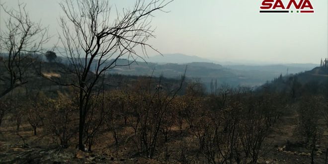 أضرار الحرائق في بساتين قرية ميسلون بريف الحفة