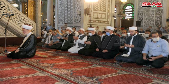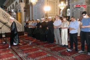 ولهجوا بالدعاء إلى الله تعالى أن يحفظ سورية والسيد الرئيس بشار الأسد وأن يسدد خطاه لما فيه خير الوطن وأن يحقق النصر على يديه الكريمتين وأن ينصر سورية على أعدائها متوسلين إلى الله بقدسية دماء من ارتقى من أطفالها وأبنائها من الشهداء وأن يعيدها بلداً آمناً كما كانت.