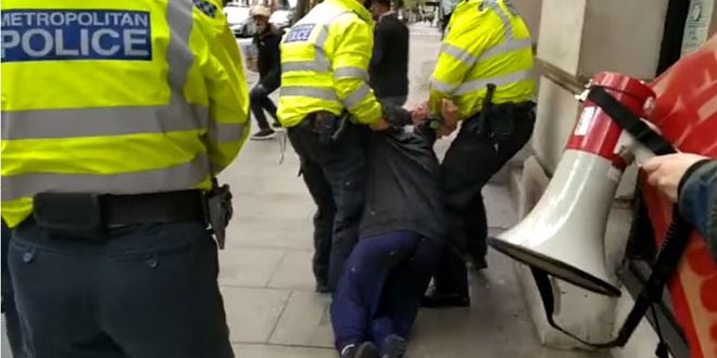 اعتقلت الشرطة البريطانية 6 ناشطين بريطانيين خلال مظاهرة تندد بجرائم الاحتلال الإسرائيلي بحق الشعب الفلسطيني في لندن.