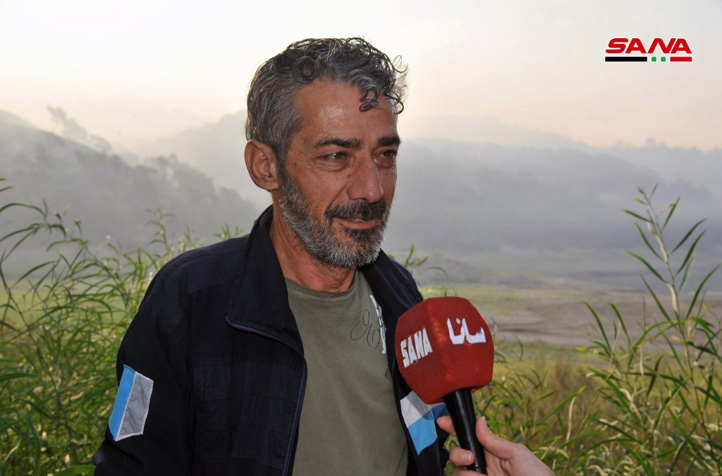 العامل حسين شرف الدين من مديرية حراج ريف دمشق الذي وصل إلى اللاذقية مع زملائه منذ مساء يوم الجمعة لمؤازرة طواقم الاطفاء عبر عن أسفه الشديد لما الم بغابات اللاذقية مشيرا إلى أن وعورة الطرقات وكثافة الاشجار والدخان وارتفاع السنة اللهب في بعض المناطق زادت من خطورة الوضع وحدت من امكانياتنا للتقدم والتصدي للنيران لذا كنا نواجهها بالمياه وفتح خطوط النار.