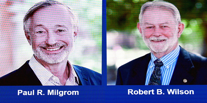 فاز الأميركيان بول ميلغروم وروبرت ويلسون اليوم بجائزة نوبل للاقتصاد لعملهما الحديث في تطوير المزادات العلنية التجارية.