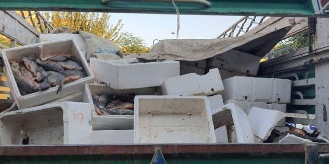 ضبطت دوريات حماية المستهلك في مديرية التجارة الداخلية بدير الزور كمية ثلاثة أطنان ونصف الطن من السمك غير الصالح للاستهلاك البشري.