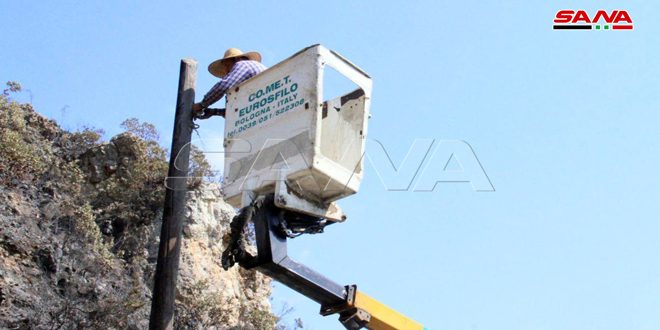 الورشات الفنية للاتصالات والكهرباء تقوم بحصر الأضرار وإصلاح الأعطال الناجمة عن الحرائق في طرطوس
