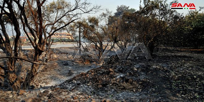 وكانت حرائق ضخمة اندلعت في عدة مناطق بمحافظات حمص وطرطوس واللاذقية تسببت بتضرر مئات الهكتارات من الغابات والاراضي الزراعية والبيوت البلاستيكية.