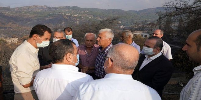 من زيارة الرئيس الأسد إلى قرية بلوران في ريف اللاذقية الشمالي المتضررة بفعل الحرائق