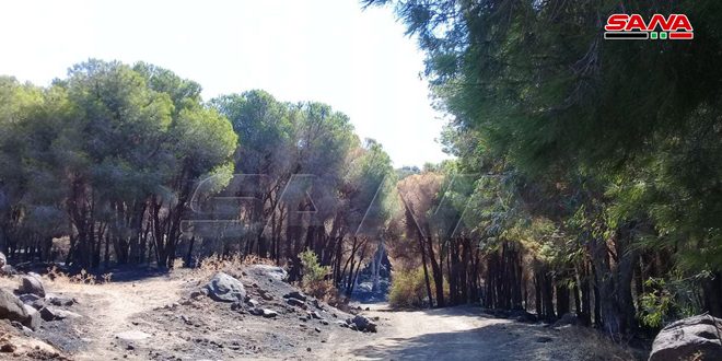 وذكر الياس بيطار رئيس دائرة حراج تلكلخ في تصريح لمراسل سانا اليوم أن مساحة الغابة تبلغ نحو 70 دونما مزروعة بأشجار الصنوبر والكينا تعرض قسم كبير منها للضرر جراء الحريق الذي طالها الاسبوع الماضي.