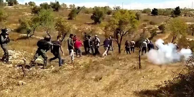 وذكرت وكالة “وفا” أن قوات الاحتلال اقتحمت القرية وأطلقت الرصاص المطاطي وقنابل الغاز السام باتجاه الفلسطينيين المشاركين في الفعالية التي دعت لها هيئة مقاومة الجدار والاستيطان لمساندة المزارعين في جني المحصول ما أدى لإصابة ثلاثة فلسطينيين بجروح والعشرات بحالات اختناق.
