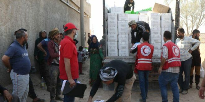 وبين رئيس فرع الهلال علي منصور في تصريح لمراسل سانا أن المرحلة الرابعة ضمن فعاليات الاستجابة الشاملة لإيصال المساعدات بدعم من اللجنة الدولية للصليب الأحمر بدأت اليوم بتوزيع مواد إغاثية منوعة تشمل سللاً غذائية وأدوات مطبخ وسطل مياه وشاحن طاقة شمسية استفادت منها 400 عائلة من قرى الحنة الغربية والمضبعة وأم رقيبة الشرقية.