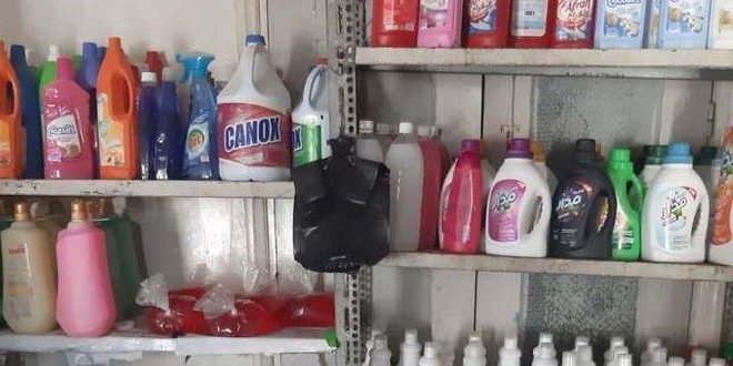 ضبط عناصر مديرية التجارة الداخلية وحماية المستهلك في حماة مشغلا بحي الحميدية يقوم بتجميع عبوات المنظفات الفارغة من عدة ماركات وتعبئتها من جديد بمادة مغشوشة غير فعالة وطرحها بالأسواق.
