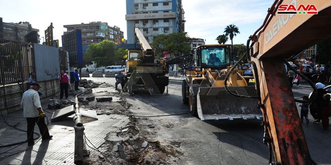 تسهيلا للحركة المرورية في منطقة البرامكة تنفذ محافظة دمشق حلا مروريا في محيط مشروع أبراج سورية (كراج بيروت القديم).