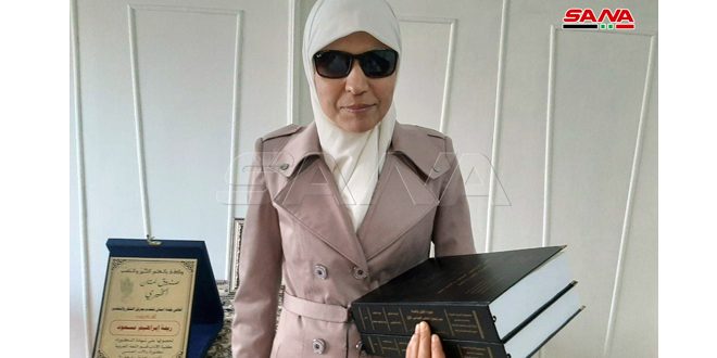 بعد سنوات من الاجتهاد والمثابرة والإرادة ونور البصيرة توجت الكفيفة ريمة إبراهيم مسعود مسيرتها التعليمية بنيل شهادة الدكتوراه من قسم اللغة العربية بجامعة دمشق لتكون أول كفيفة من محافظة السويداء تصل إلى هذه الدرجة التعليمية.