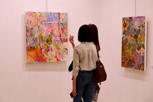 جاء المعرض الذي أقامه المركز الوطني للفنون البصرية للفنانة التشكيلية اللبنانية فتاة بحمد زاهيا بالطبيعة وألوانها بصورة عكست مشاعر الفنانة وتأثرها فيها.