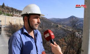 استنفار كامل للورشات التابعة لشركة كهرباء طرطوس بدأ منذ اليوم الأول للحريق في العاشر من الشهر الجاري وخاصة في منطقتي مشتى الحلو وعنازة بانياس وفق حديث المهندس عبد الحميد منصور مدير الشركة لمراسلة سانا موضحاً أنه تم استدعاء الفنيين والمهندسين وعمال الطوارئ للمساعدة في عمليات إخماد الحرائق وخاصة حول محولات الكهرباء الموجودة بالقرى مشيراً إلى أنه تم وضع خطة إسعافية لتأمين التغذية الكهربائية لمحطات الضخ التابعة لمؤسسة المياه لتأمين المياه لصهاريج وسيارات الإطفاء.