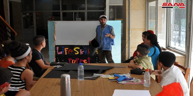 مدرب الورشة المخرج نورس الملحم أشار إلى أن الورشة تهدف على مدى 3 أيام إلى تعريف الأطفال واليافعين بهذا النوع من الفن التراثي وكيفية تصنيع الدمى وخيال الظل وتحريكها على المسرح ما يسهم بإضافة مهارات جديدة لديهم في تنفيذ الأعمال اليدوية وتعزيز روح العمل التشاركي بينهم لافتاً إلى أنه سينتج عن الورشة عرض مصغر يعده الأطفال بعد تدريبهم على تصنيع وتحريك شخصيتي مسرح الظل التقليديتين “كركوز وعيواظ” وإدخال جانب توعوي بخصوص الوقاية من فيروس كورونا.