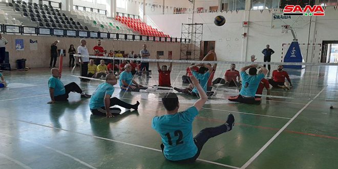 فاز منتخب السويداء على منتخب دمشق بثلاثة أشواط مقابل شوط في مباراة للكرة الطائرة للرياضات الخاصة بوضعية الجلوس التي جمعتهما اليوم على أرض صالة الباسل بمدينة المزرعة الرياضية بمناسبة أعياد تشرين.