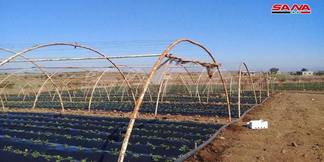 مراسل سانا جال على بعض قرى ريف تلكلخ ورصد عملية تجهيز الفلاحين لحقولهم لزراعتها بالفريز حيث أكد المزارع خضر العلي من قرية جبق أنه ومنذ سنوات بدأ مشروعه عبر إنشاء بيت محمي واحد والآن لديه ستة بيوت يعمل بها إضافة إلى دراسته الجامعية مشيرا إلى أنه اختار زراعة الفريز لانخفاض تكاليفها مقارنة مع المحاصيل الأخرى التي تزرع ضمن البيوت البلاستيكية كالبندورة والخيار.