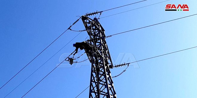 إصلاح أعطال الشبكة الكهربائية الناتجة عن الرياح الشديدة في حمص وريف دمشق