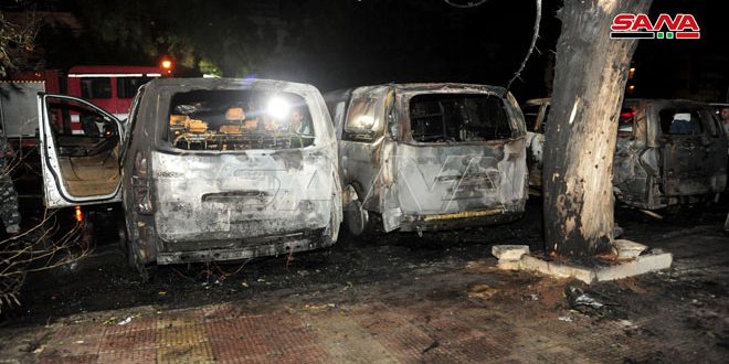 وقال العقيد محمود الصالح رئيس قسم عمليات مرور دمشق في تصريح لسانا أنه تمت السيطرة على الحريق من قبل عناصر اطفاء دمشق ولا توجد أي اصابات وإنما أضرار مادية في الفانات التي نشب فيها الحريق مبينا أن معلومات أولية أشارت إلى وجود “بيدونات” بنزين بداخلها.